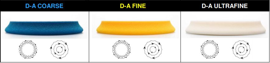 D-A FINE sunđer ima najširu primenu u BigFoot liniji aplikatora; omogućava i efikasno uklanjanje nedostataka i visok sjaj pri upotrebi na različitim vrstama premaza. Ovaj sunđer sa D-A FINE polir pastom koristi se za uklanjanje blažih i finijih oštećenja ili kao završni korak za postizanje finalnog izgleda, nakon upotrebe grubljeg aplikatora i polir paste.
